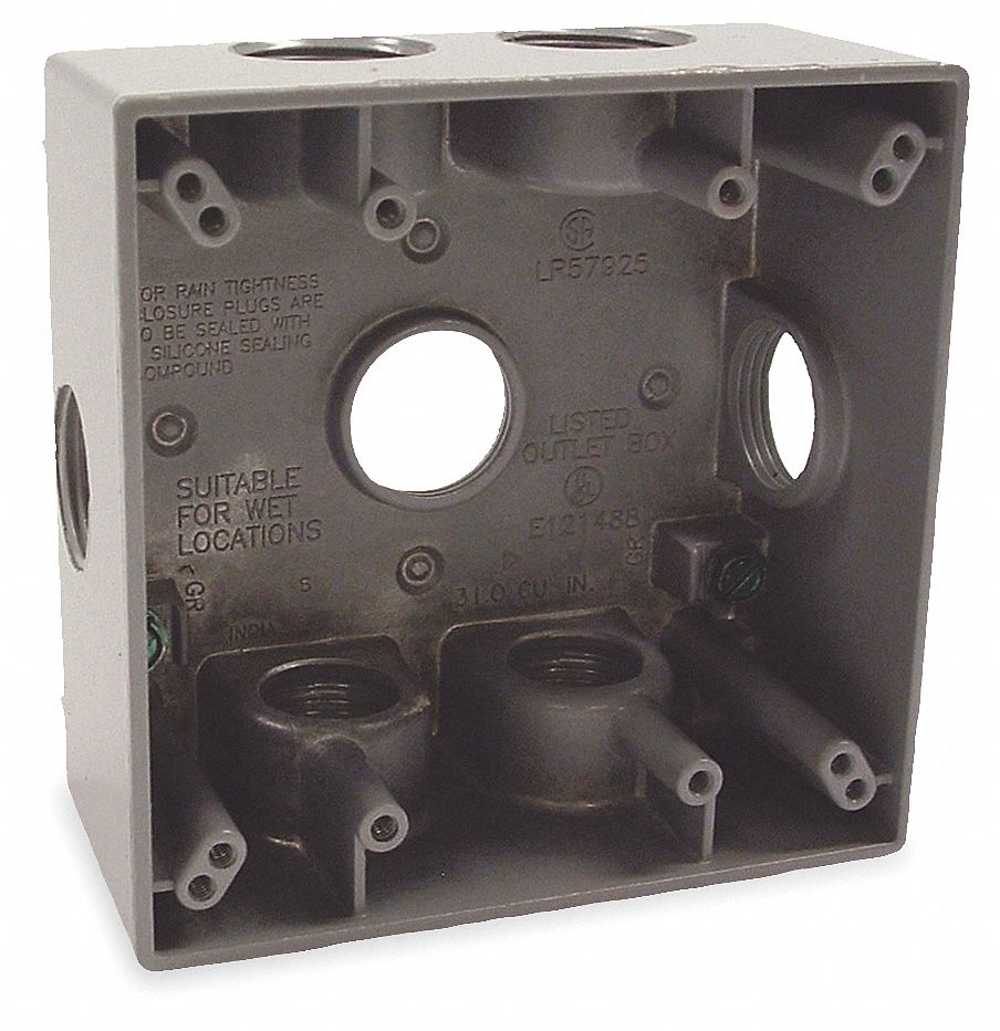 Item Weatherproof Electrical Box. Skip to main content. Weatherproof Electrical Box 2-Gang 4-Inlet Aluminum 918658-7 Pkg Qty1.